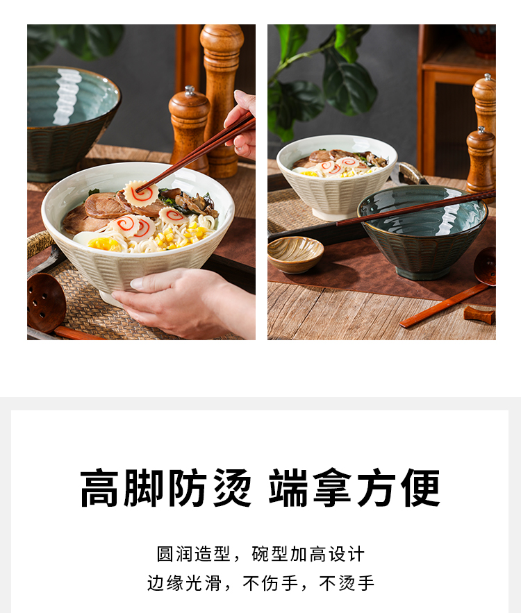 🍜 Large Ramen Bowl: Wide edge diameter of 20–22 cm, perfect for ramen, noodles, soups, or rice dishes.