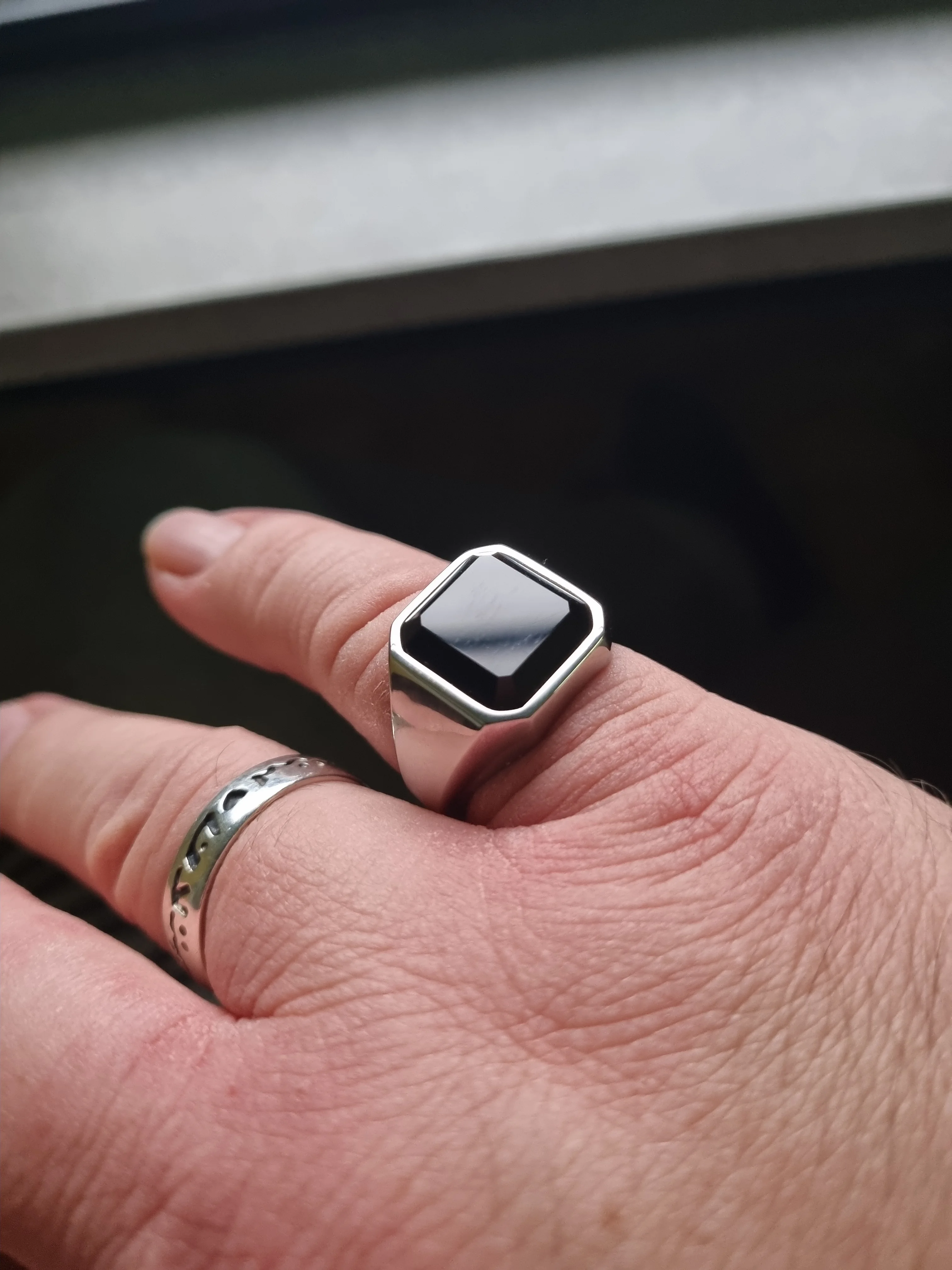 Meiwei Stainless Steel Black Agate Ring – Unisex Geometric Korean Style