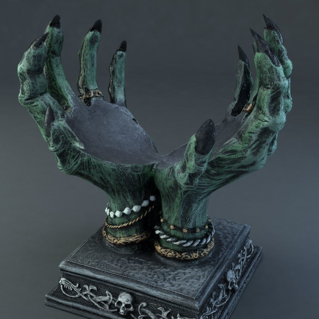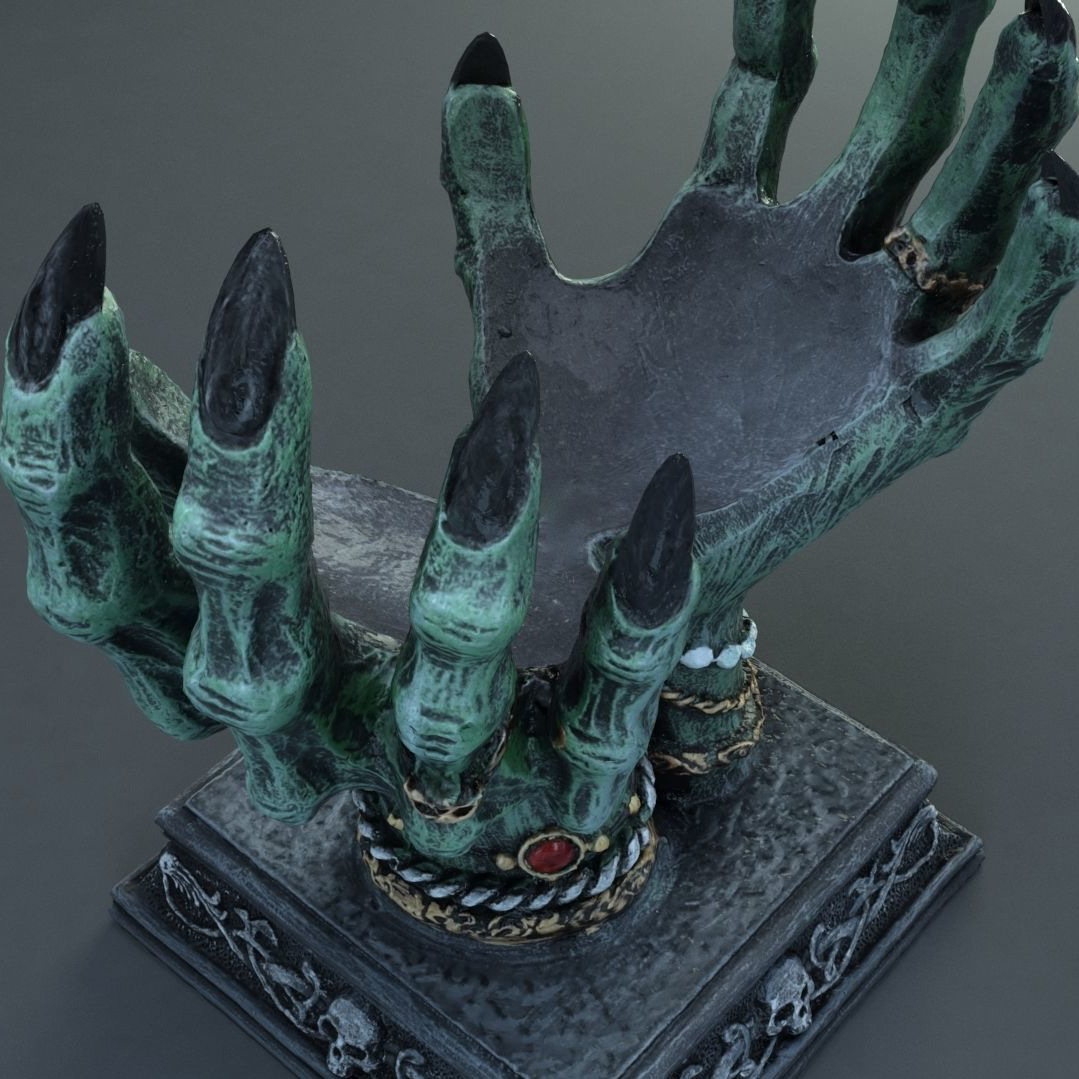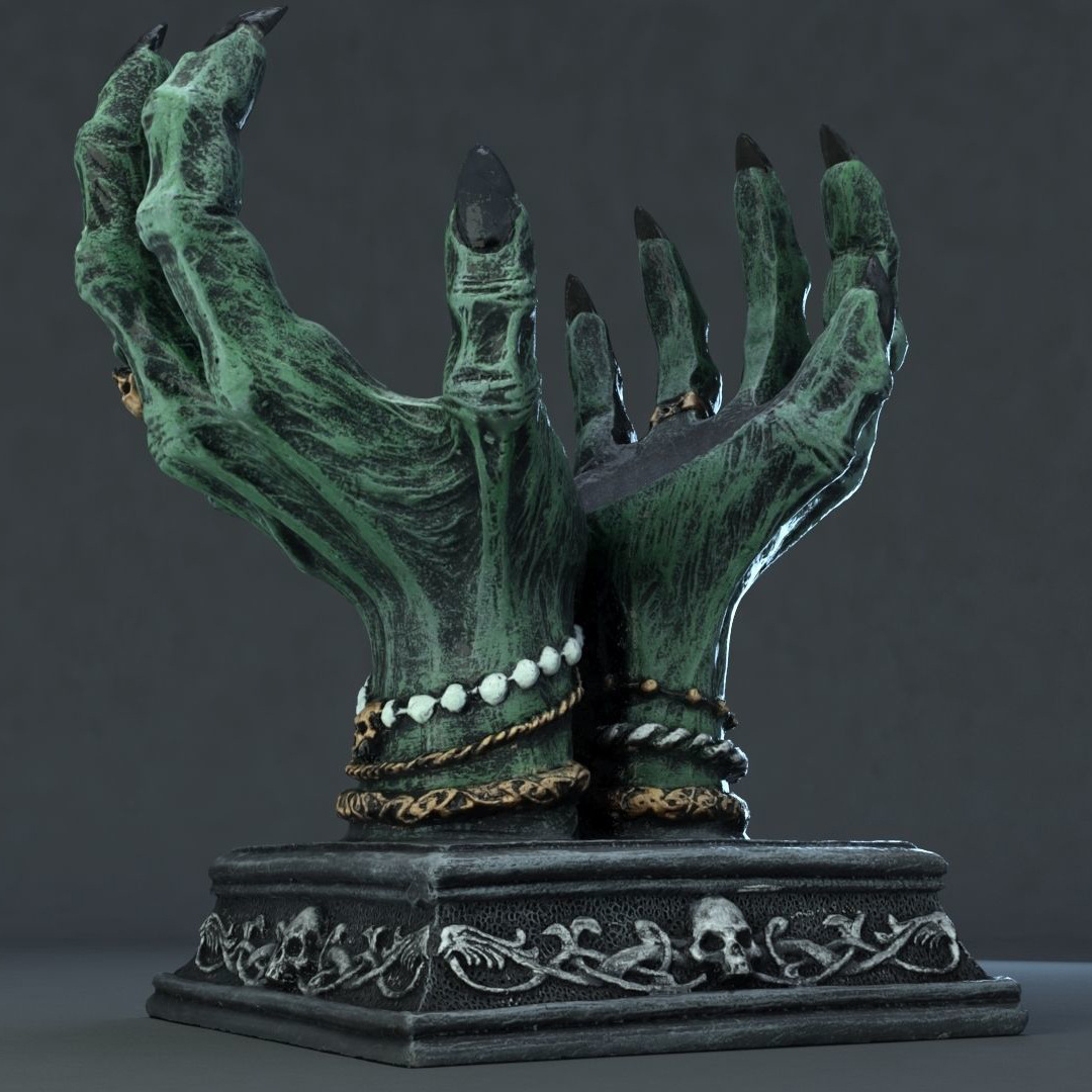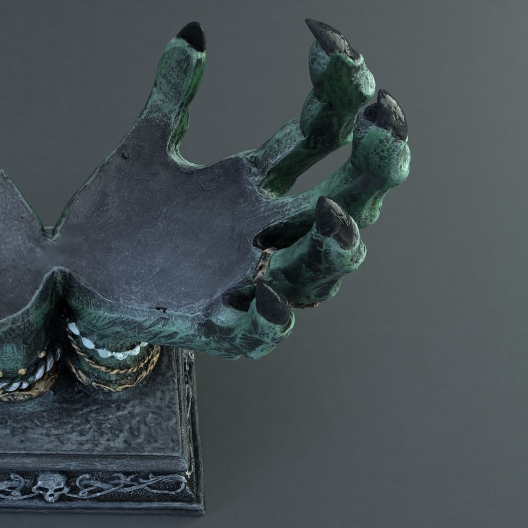 The hand came perfectly packaged, in Styrofoam and appropriate cardboard. Nothing is damaged! It is about the size of a child's hand. It can be attached to the wall with a hook or a screw (not included). I really like the witch hand and can recommend it. The colors are just like in the pictures.