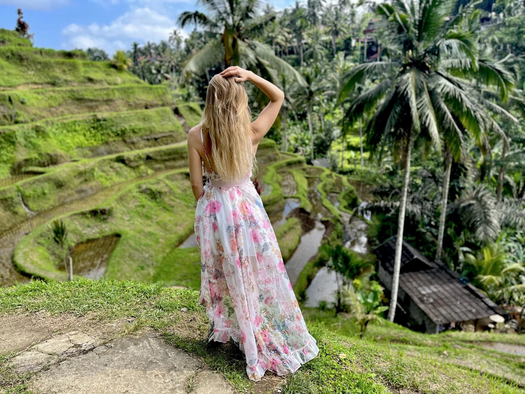 SunnyElegance Women’s Summer Maxi Dress – V Neck, Short Flutter Sleeve, Flowy A-Line Beach Vacation Long Dress